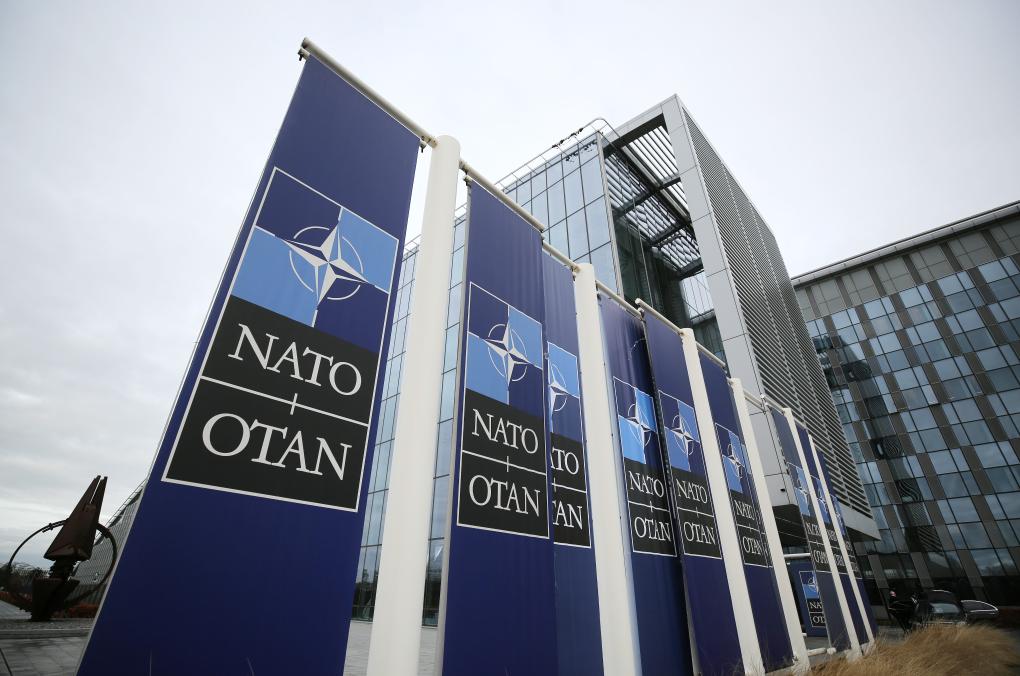这是2月15日在比利时布鲁塞尔拍摄的北约总部一角。凯发k8官网记者 赵丁喆 摄