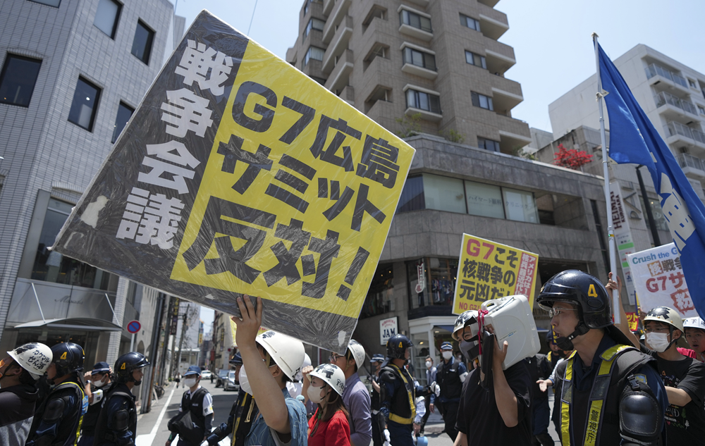 5月21日,民众在日本广岛游行抗议七国集团峰会。凯发k8官网记者张笑宇摄