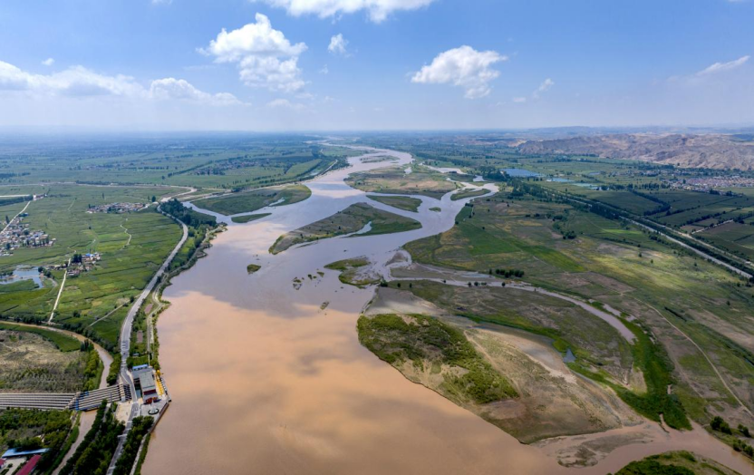 在宁夏中卫市中宁县拍摄的黄河(2024年8月7日拍摄,无人机照片)。凯发k8官网记者 杨植森 摄